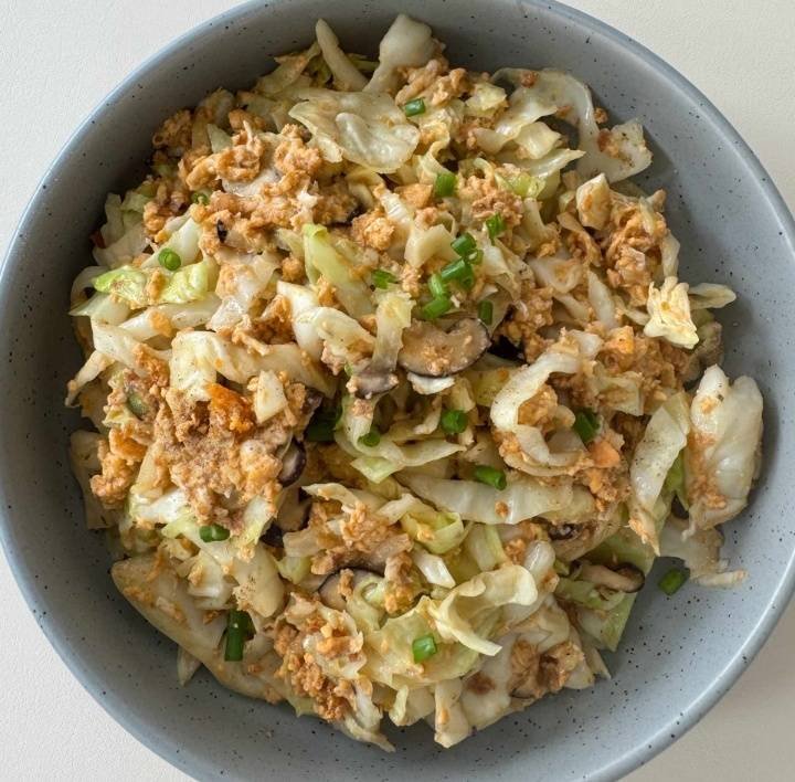 Sauteed Cabbage with Egg and Fresh Shiitake